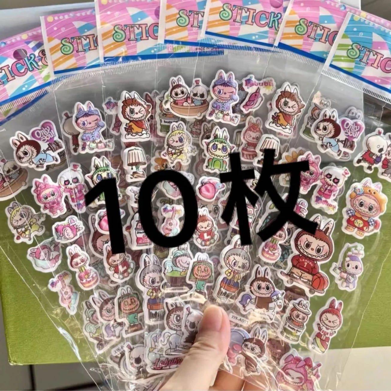 24時間以内発送 送料無料 かわいい 立体シール 10枚 ラブブ